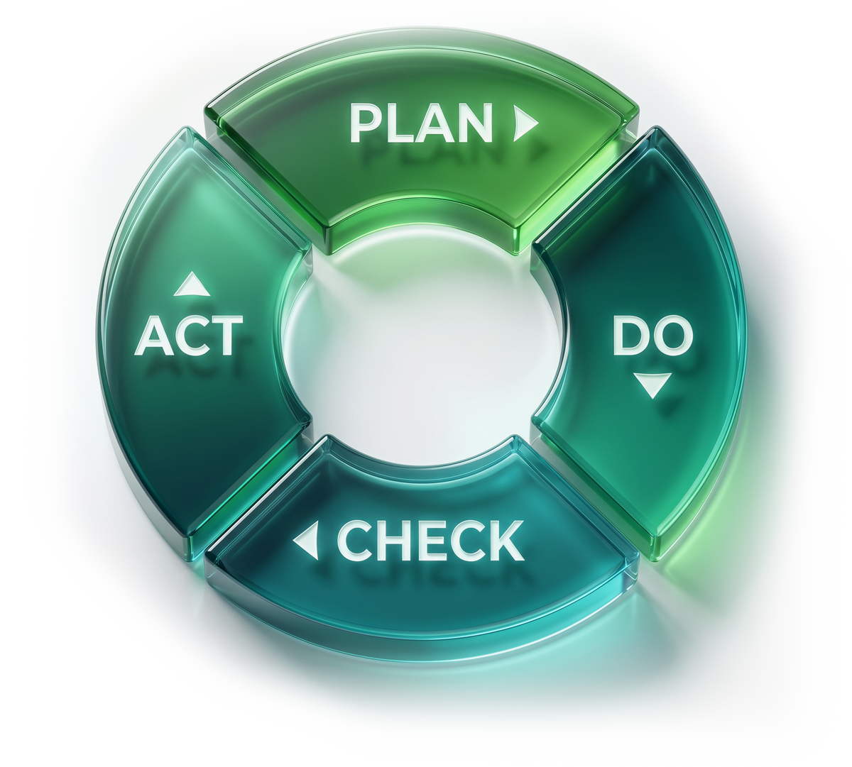 By establishing annual environmental and energy objectives, evaluating the implementation of these objectives through management reviews, and working according to the PDCA cycle, we ensure that we continuously monitor and assess our activities and impacts along the entire value chain.