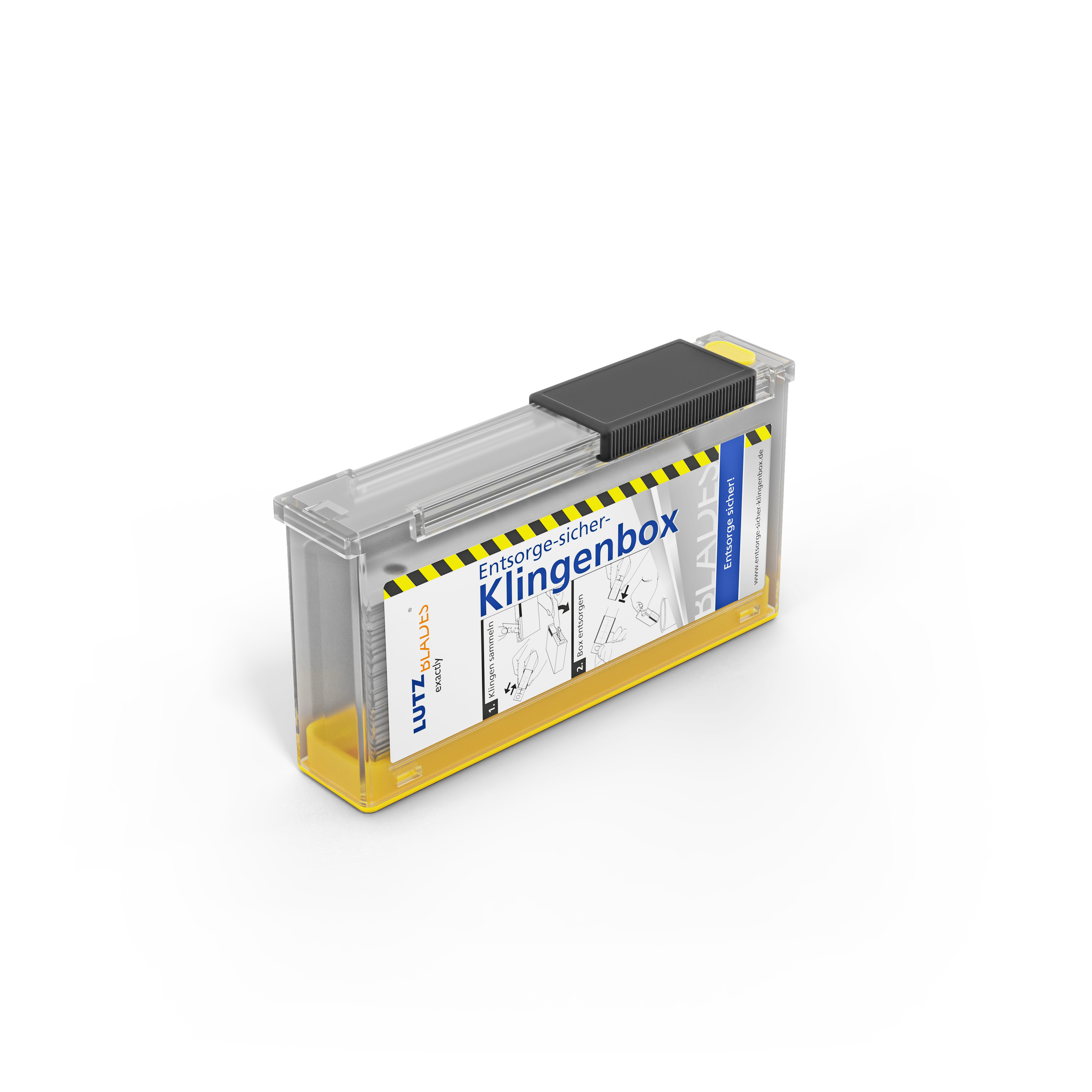 Il Entsorge-Sicher-Klingenbox per lame offre una soluzione affidabile per smaltire correttamente e in sicurezza lame usate e segmenti di lama. Un meccanismo scorrevole con pulsante di sicurezza integrato assicura che le lame inserite non possano più essere rimosse e rimangano protette in modo permanente all’interno. Il contenitore giallo è disponibile in un’unica dimensione e, se necessario, può essere dotato di un gancio Euroforo.