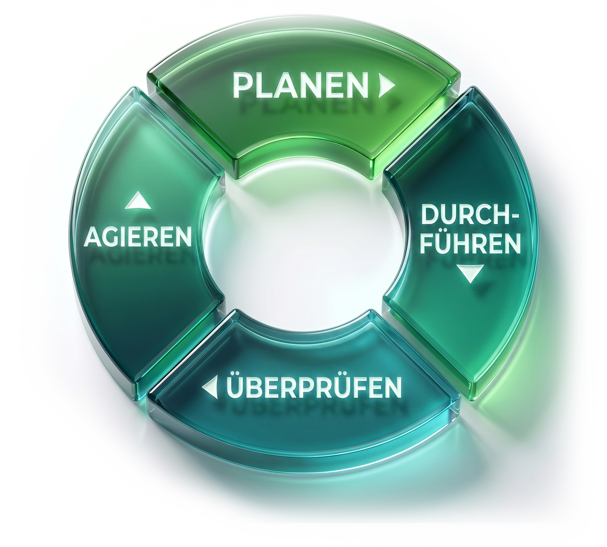 Durch die Festlegung von jährlichen Umwelt- und Energiezielen, die Bewertung der Umsetzung der Ziele im Rahmen von Managementreviews und die Arbeitsweise nach dem PDCA-Zyklus stellen wir sicher, dass wir unsere Tätigkeiten und Auswirkungen entlang der gesamten Wertschöpfungskette kontinuierlich betrachten und bewerten.