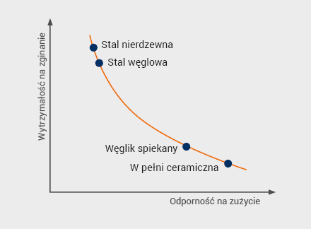 • Mniejsze tarcie między krawędzią tnącą a ciętym materiałem