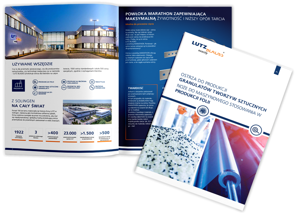 z ostrzy granulujących LUTZ BLADES:- Czyste krawędzie tnące bez narostu