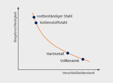 leicht man Klingen aus Kohlenstoffstahl oder rostbeständigem Stahl mit Klingen aus Hartmetall oder Vollkeramik, so stellt man fest, dass es signifikante Unterschiede in den Eigenschaften gibt. Beide Werkstofftypen haben besondere Spezifikationen, die, wenn man sie richtig einsetzt, erhebliche produktionstechnische Vorteile für den Nutzer bieten.Betrachtet man die positive Biegebruchfestigkeit von Klingen aus Kohlenstoffstahl, eignet sich dieser Werkstoff aufgrund seiner Flexibilität besonders für handgeführte Anwendungen, wie zum Beispiel bei DIY-Klingen. Hier sind Hartmetall und Keramik aufgrund ihrer chemischen Struktur deutlich schlechter ausgestattet. Der Einsatz von Hartmetall oder Vollkeramik kann jedoch in vielen Anwendungsbereichen mit maschinengeführten Klingen seine einzigartigen Stärken bei den Standzeiten ausspielen. Zusätzlich ragt der Werkstoff Vollkeramik in der Temperaturbeständigkeit bis 600 °C deutlich heraus. Vollkeramik ist jedoch nicht nur besonders hitzebeständig, sondern verfügt zusätzlich über eine hohe Oxidationsbeständigkeit und ist nicht leitfähig.